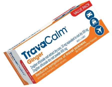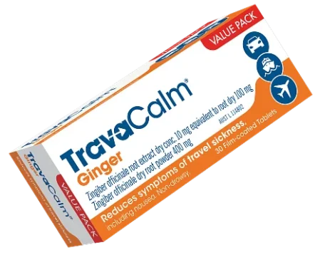 TravaCalm Ginger reduces symptoms of travel sickness, including nausea.